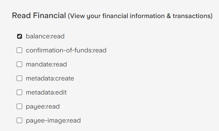 • get_account() – Retrieves the unique identifier of a bank account, as a user can have more than one account it’s important that the correct account is selected. As I have a single account, I just return what’s at index 0. This function is used by the get_balance() and get_transactions() functions.