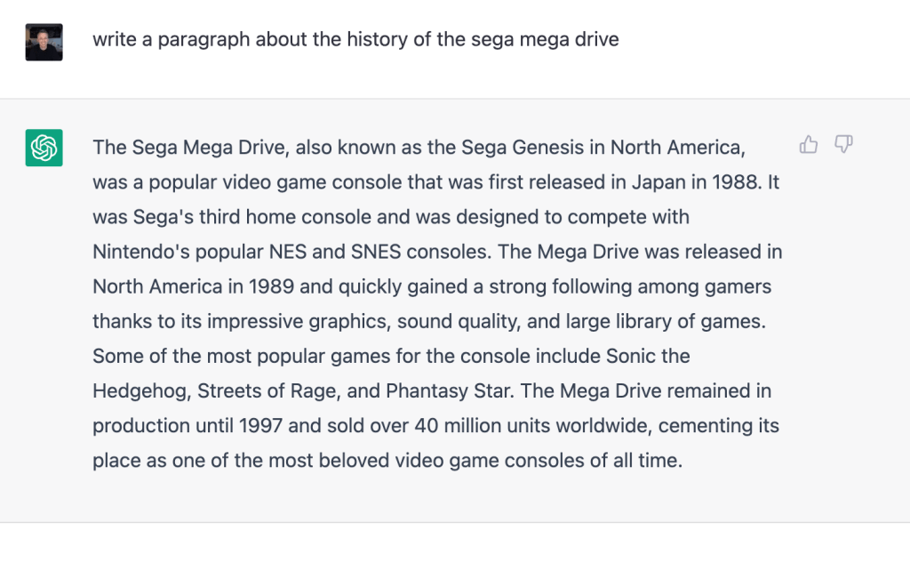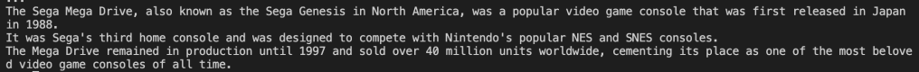 text = """The Sega Mega Drive, also known as the Sega Genesis in North America, was a popular video game console that was first released in Japan in 1988.
