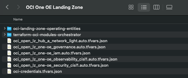 Copy these files into the root of the OCI One OE Landing Zone folder – you can leave them in their original location, but by taking a copy this means that you can edit them (if needed) and easy return them to their “vanilla” state by re-copying across from their original location.