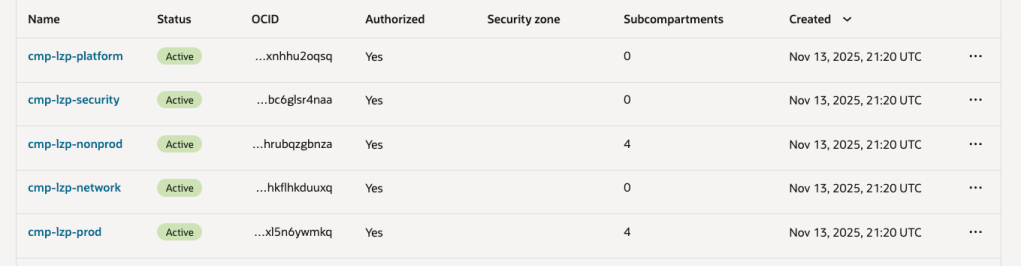 Within a few minutes, you should (hopefully!) have a beautiful OCI Landing Zone deployed within your tenancy.