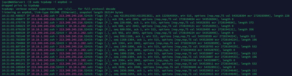 sudo tcpdump -i enp0s6 -n