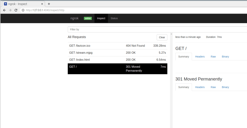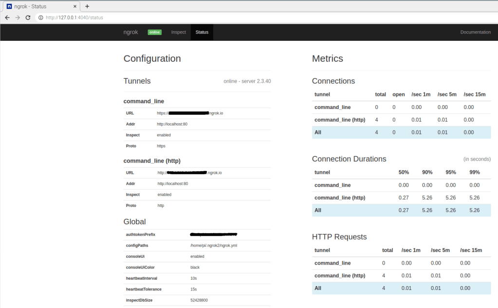Below you can see this in action….I’ve obscured the publicly accessible URLs (“Forwarding”) as these contain my public IP address.