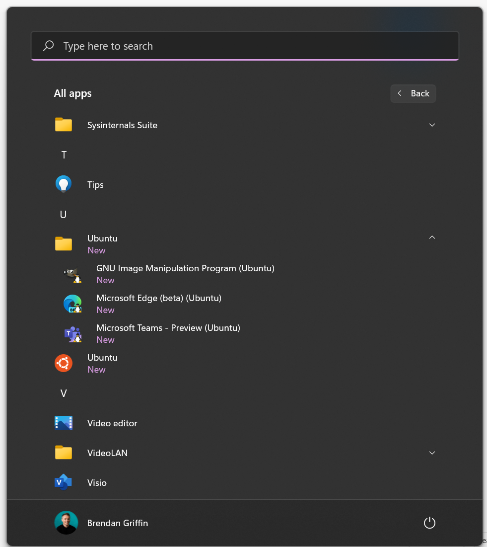 One of the cool things about WSLg is that Linux apps that have been installed appear in the Start Menu!