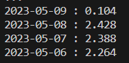 print(str(result["interval_start"].split("T")[0]) + " : " + str(result["consumption"]))
