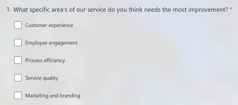I recently had a situation where I had created a survey that had a question that permitted multiple answers, example below: