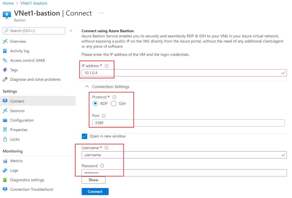 Re-provisioning the Azure Bastion to use Standard rather than Basic and enabling IP-based connection fixed this: