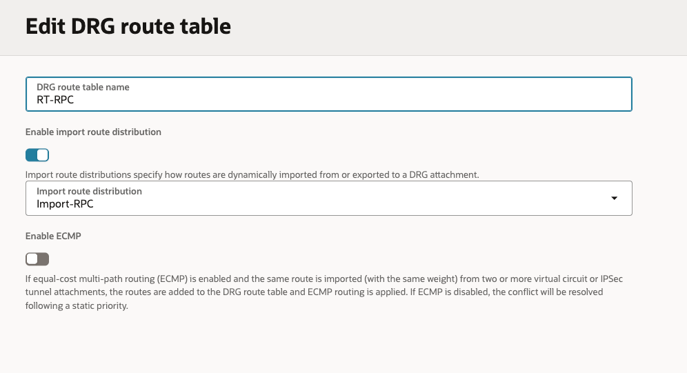 Remote Peering Connection Import Routes: This will enable the RPC to see all of the VCNs and IPSec tunnel (which is the Site to Site VPN).