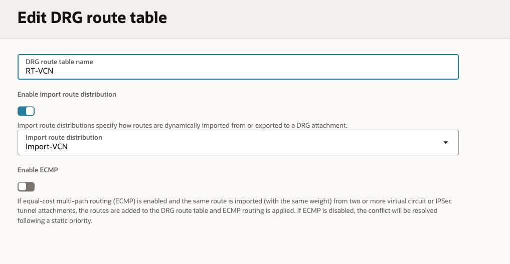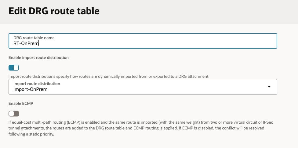 On-Prem Import Routes: This will enable On-Prem to see all of the routes from the VCNs and Remote Peering Connection.