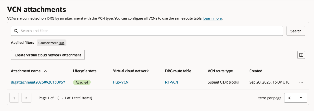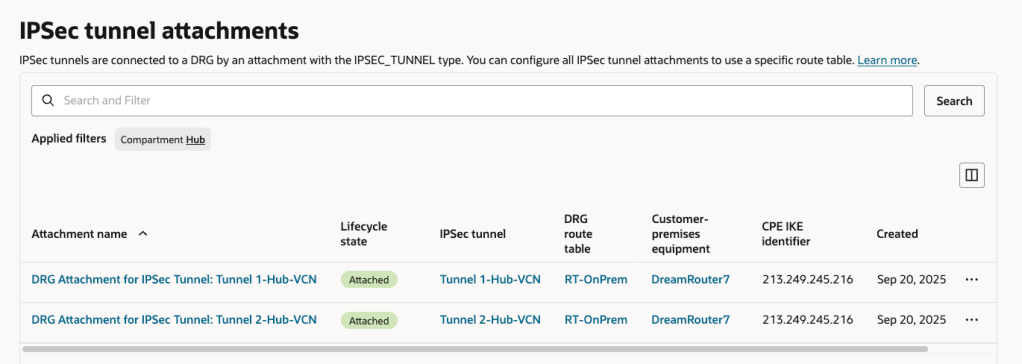 - Created 3 x Route Tables (On-Prem/RPC/VCN), associating each of these new Route Tables with the respective new Import Rule Distributions.